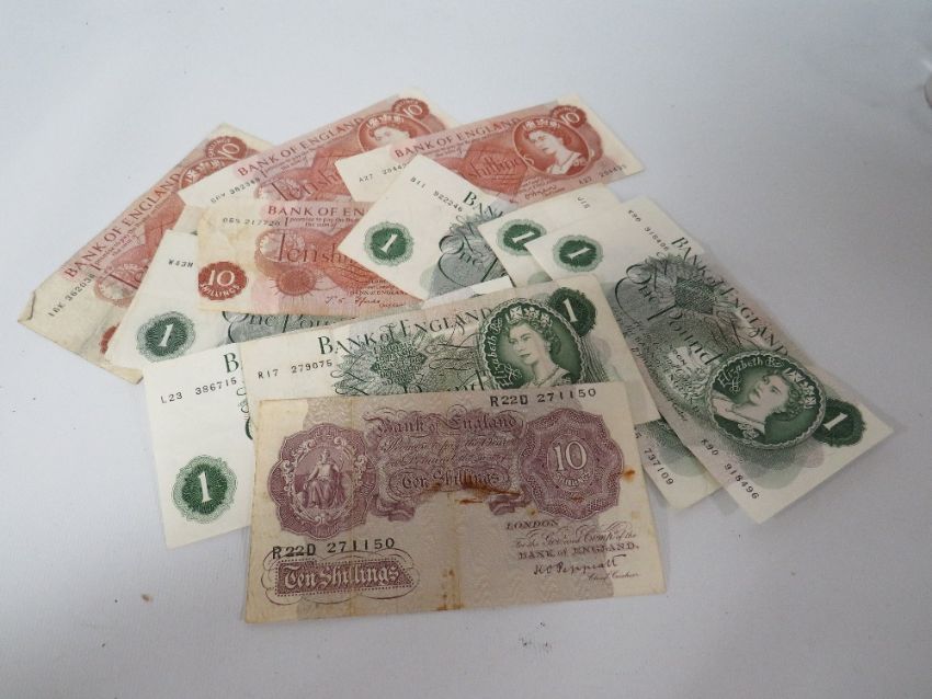 A COLLECTION OF TEN SHILLING AND ONE POUND NOTES, TO INCLUDE A WARTIME LILAC ISSUE