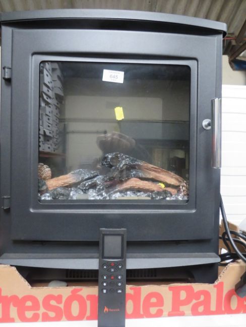 A FLAMETEK ELECTRIC STAND ALONE FIRE WITH REMOTE