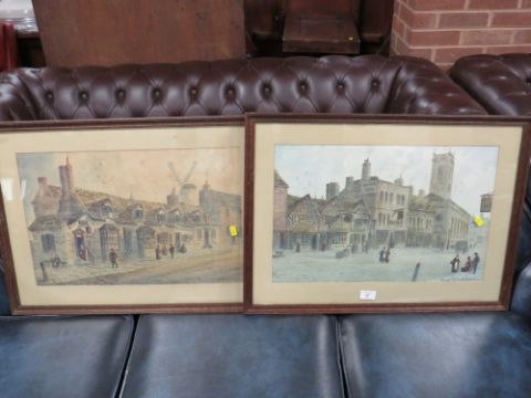 A PAIR OF FRAMED AND GLAZED PAUL BRADDON WATERCOLOURS OF TOWN SCENES