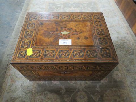 A VINTAGE WALNUT TUNBRIDGE WARE DRESSER BOX