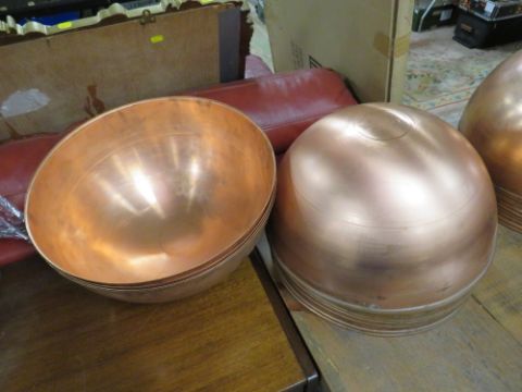A SET OF 15 COPPER CIRCULAR SHADES/BOWLS DIA. 36 CM
