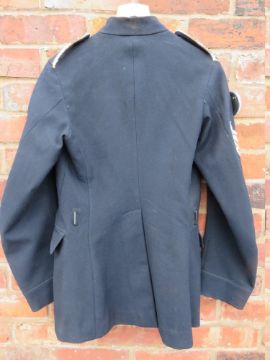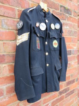 A VINTAGE BLACK 'BEATLES' BLAZER / JACKET, with numerous vintage badges and patches