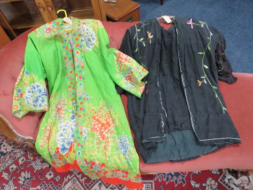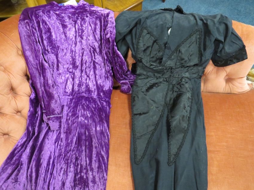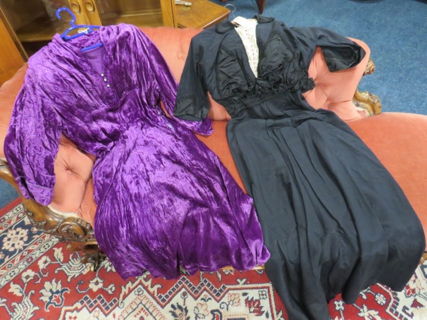 A COLLECTION OF EARLY 20TH CENTURY LADIES VINTAGE CLOTHING, various styles and periods comprising 1920s and 1930s etc, to include a cape, velvet dress, Japanese kimono etc. (13)