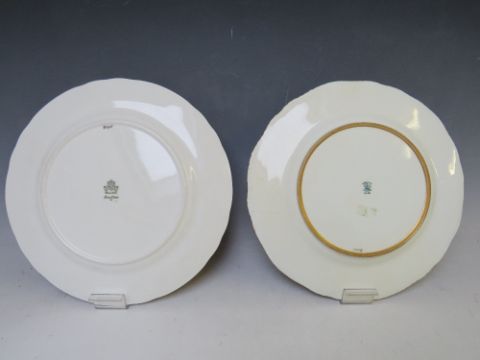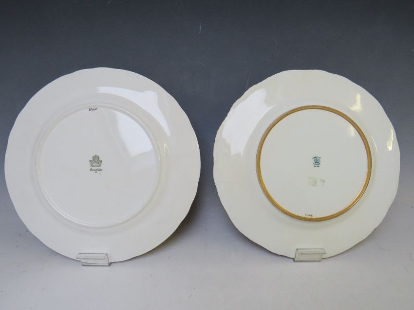 AN AYNSLEY CABINET PLATE WITH FRUIT DESIGN SIGNED D. JONES , together with a Coalport cabinet plate with gilt decoration and red detail, Dia. 26.5 cm (2)