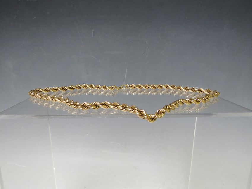 A HALLMARKED 9CT GOLD ROPE CHAIN, overall L 46.5 cm, approx weight 20 g