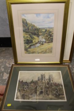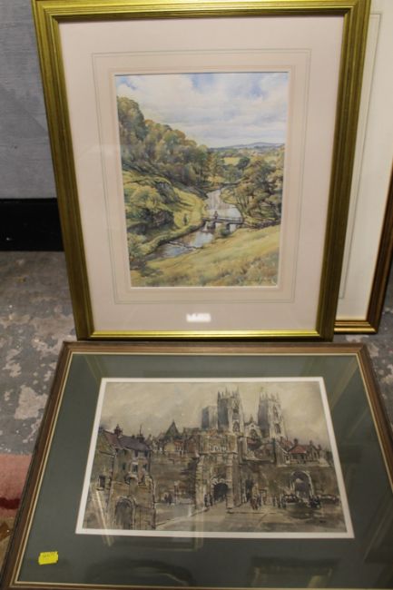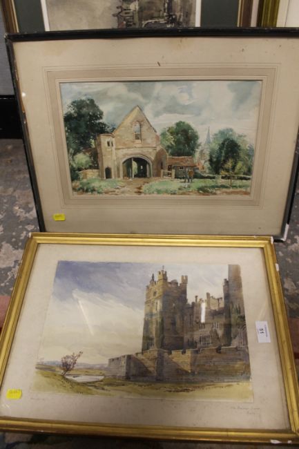 A COLLECTION OF FIVE ASSORTED WATERCOLOURS INCLUDING A CASTLE