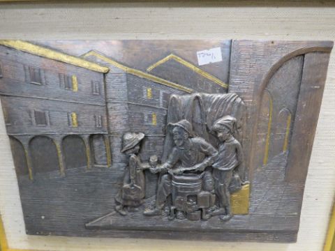 A VINTAGE ITALIAN WHITE METAL DECORATIVE PLAQUE MARKED 800 48 CM X 38 CM