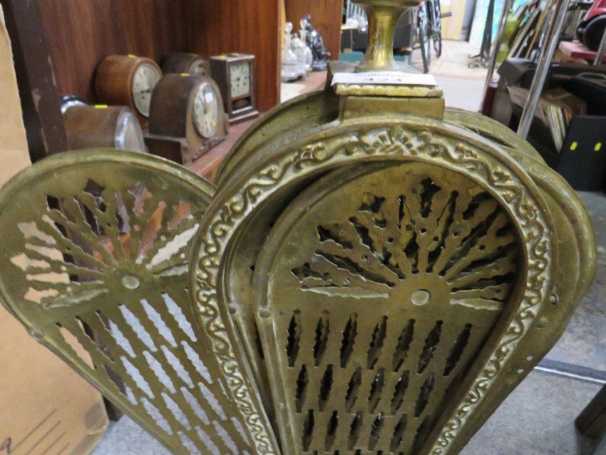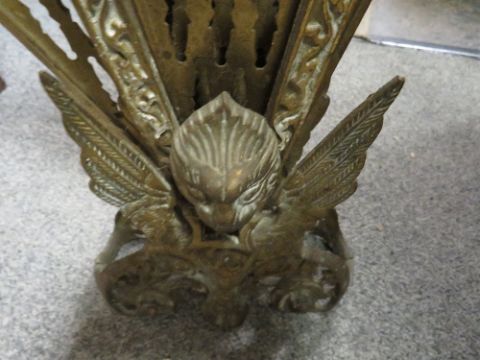 A DECORATIVE BRASS GRIFFIN FIRE GUARD