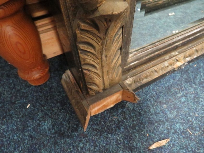 A LARGE VICTORIAN CARVED OAK MIRROR 168 X 108 CM