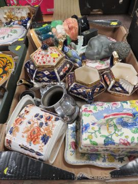 THREE TRAYS OF ASSORTED CERAMICS TO INCLUDE MASONS ETC