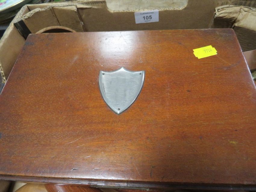 A TRAY OF ASSORTED TREEN TO INCLUDE A WRITING BOX AND CONTENTS ETC