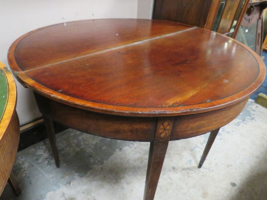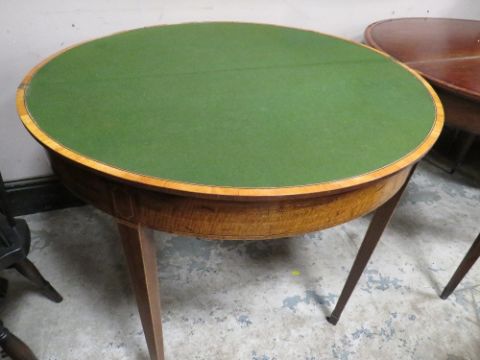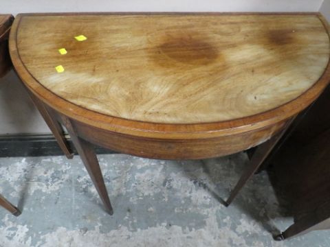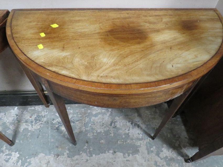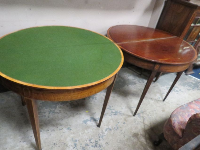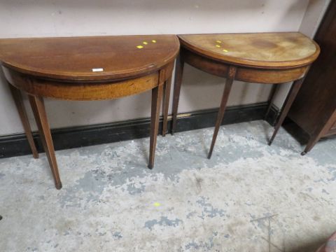 A PAIR OF ANTIQUE MAHOGANY FOLD-OVER CARD TABLES A/F