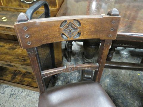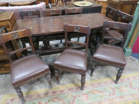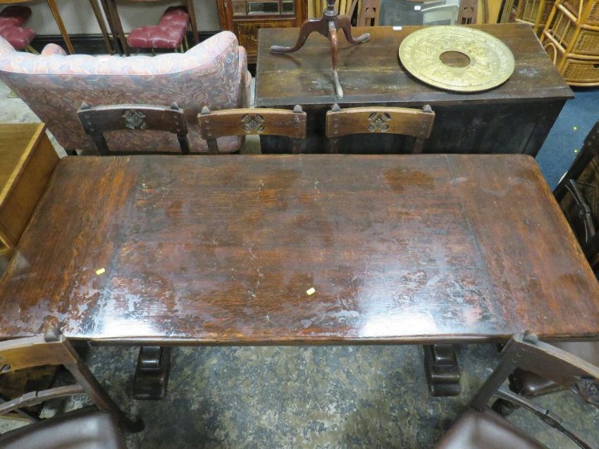 A VINTAGE OAK REFECTORY TABLE WITH EIGHT OAK GOTHIC STYLE CHAIRS