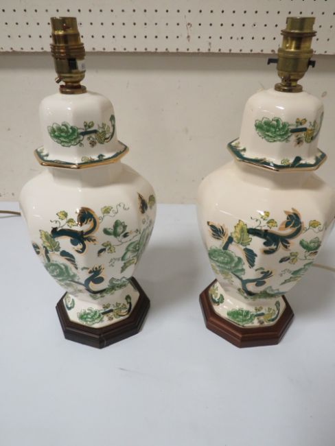A PAIR OF MASONS CHARTREUSE LAMP BASES