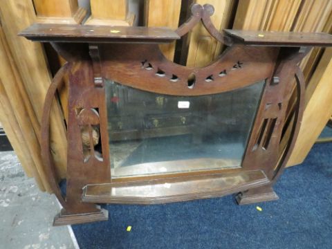 AN OAK ART NOUVEAU OVERMANTLE MIRROR W-106 CM