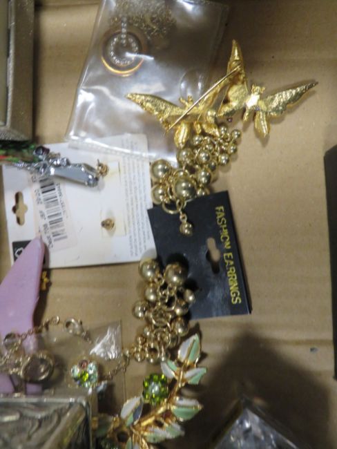 A TRAY OF ASSORTED COSTUME JEWELLERY, WATCHES, COLLECTABLES ETC