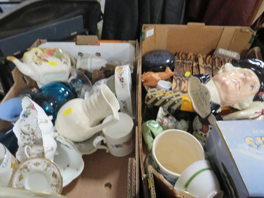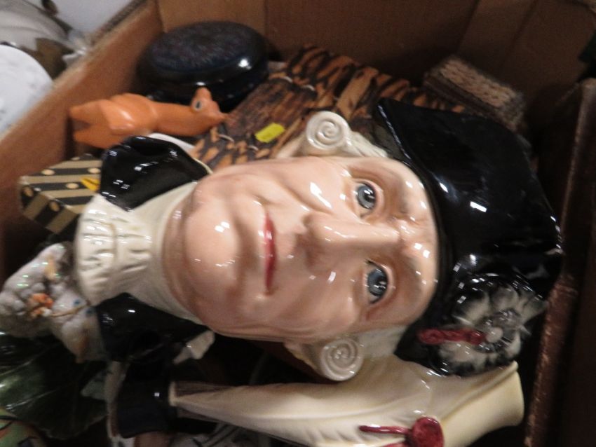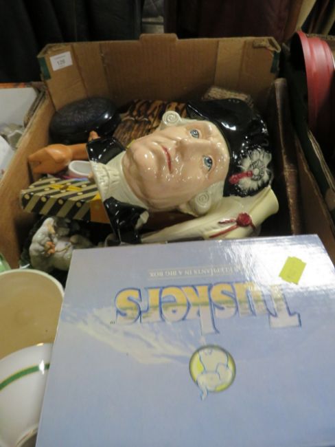 TWO TRAYS OF ASSORTED CERAMICS ETC TO INCLUDE DOUBLE SIDED ROYAL DOULTON THE ANTAGONISTS COLLECTION THE SIEGE OF YORKTOWN 1781