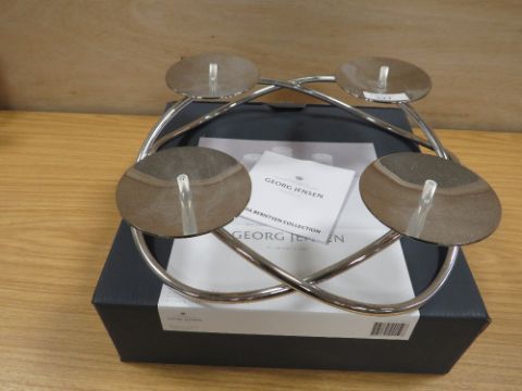 A BOXED GEORG JENSEN STAINLESS STEEL GRAND CANDLE HOLDER