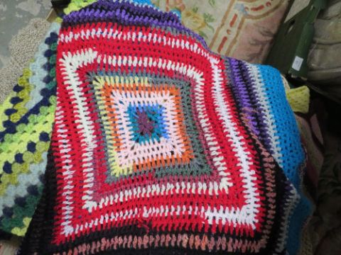 TWO BOXES OF VINTAGE HANDMADE BLANKETS