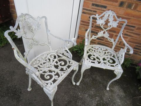 TWO CAST ALUMINIUM GARDEN PATIO CHAIRS