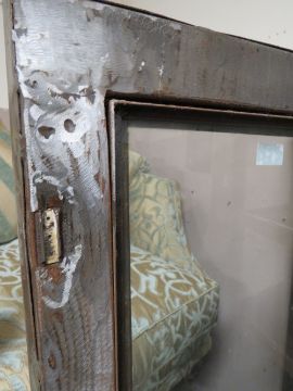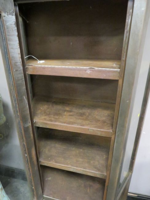A VINTAGE METAL INDUSTRIAL STYLE GLAZED CABINET H-183 W-98 CM