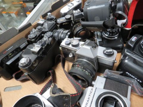 A TRAY OF VINTAGE CAMERAS