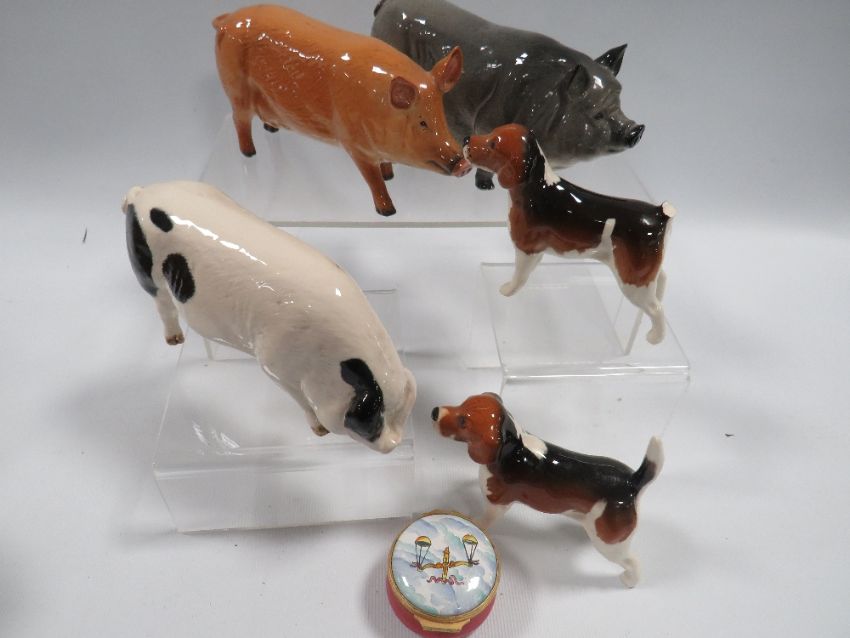 A SELECTION OF CERAMICS TO INCLUDE ROYAL DOULTON PIGS, WEDGWOOD JASPERWARE ETC
