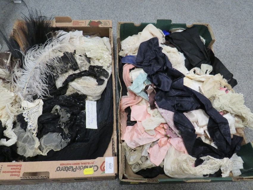 TWO TRAYS OF EARLY 20TH CENTURY ANTIQUE LACE ITEMS AND CLOTHING ACCESSORIES TO INCLUDE A SELECTION OF ANTIQUE LACE JABOTS ETC