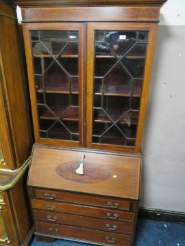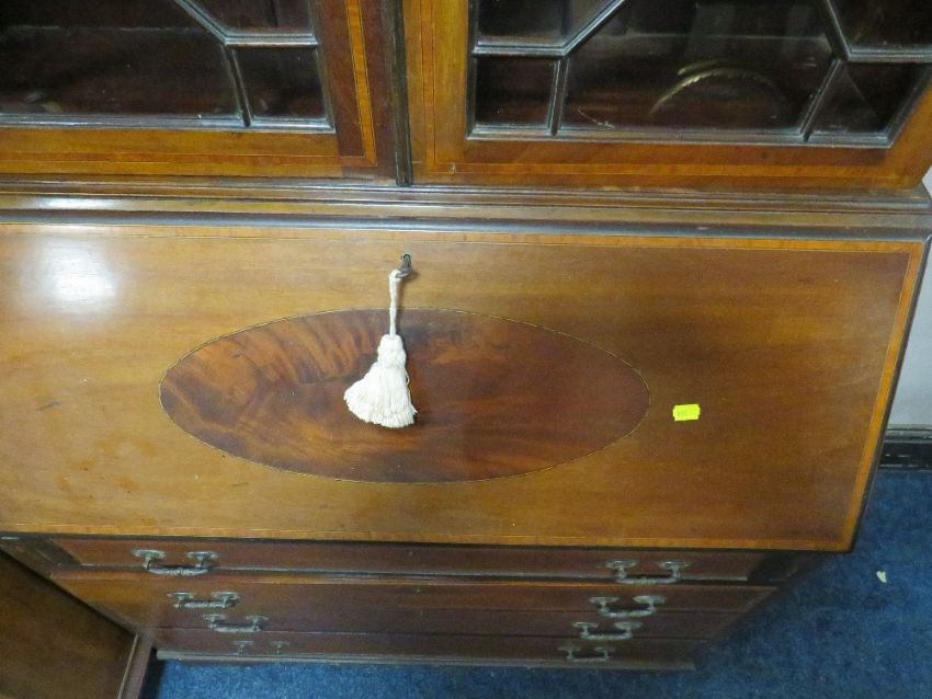 AN EDWARDIAN MAHOGANY AND INLAID BUREAU BOOKCASE