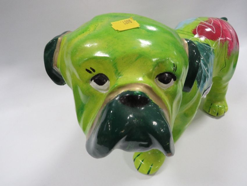 A NOVELTY PAINTED FIGURE OF A BULL DOG PUPPY