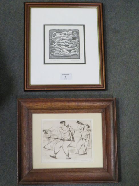 HILARY PAYNTER (1943). 'SATED SLEEP', FRAMED TOGETHER WITH ANOTHER FRAMED EXAMPLE (2)
