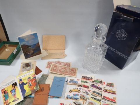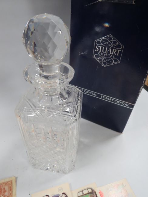 A SMALL QUANTITY OF COLLECTABLES WITH A STUART CRYSTAL DECANTER