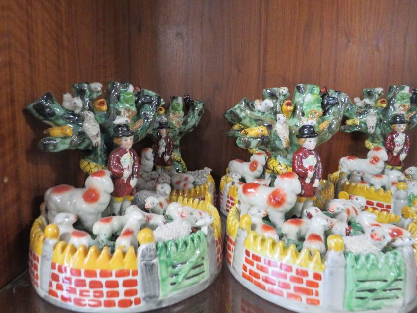 SEVEN REPRODUCTION STAFFORDSHIRE FARMYARD FIGURES TOGETHER WITH ANOTHER