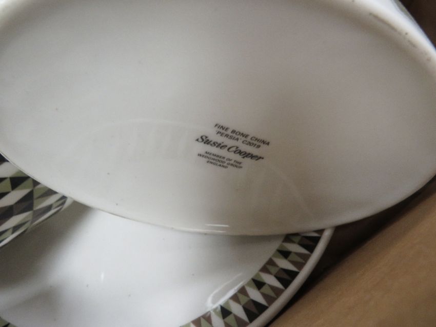 TWO TRAYS OF CERAMICS TO INCLUDE WEDGWOOD QUEENS WARE , WEDGWOOD SUSIE COOPER DESIGN ETC