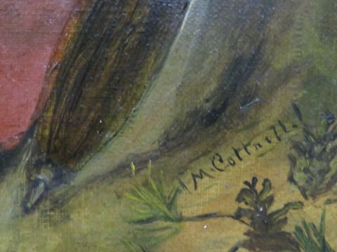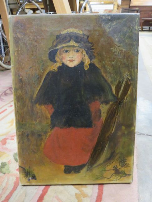 A.M.COTTERILL OIL ON CANVAS STUDY OF A YOUNG GIRL HOLDING AN UMBRELLA