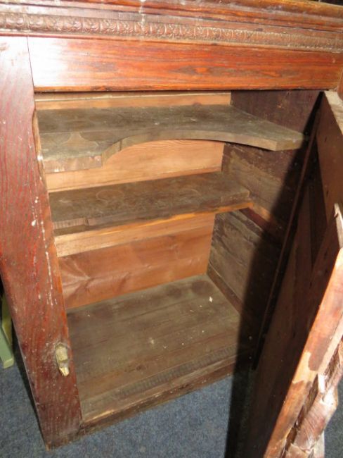 AN UNUSUAL VINTAGE OAK PANELLED CUPBOARD 94 X 81 CM