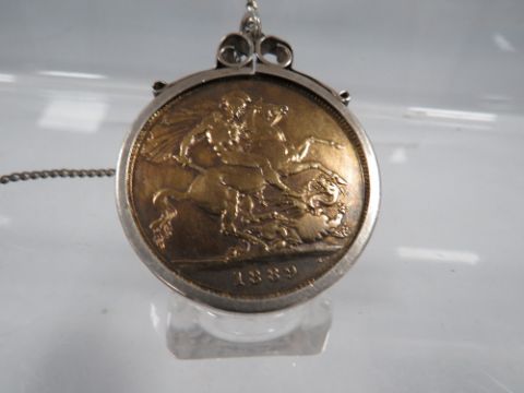 A 1889 SILVER CROWN PENDANT NECKLACE