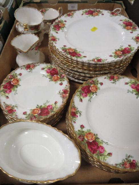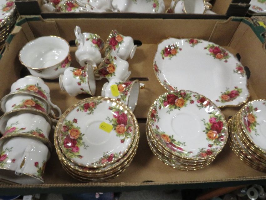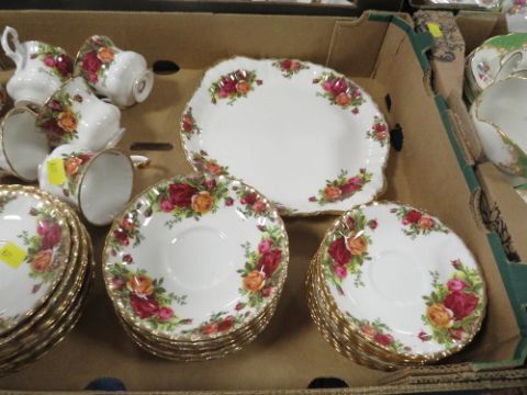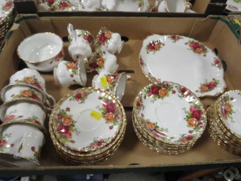 THREE TRAYS OF OLD COUNTRY ROSES TEA/DINNER WARE