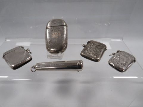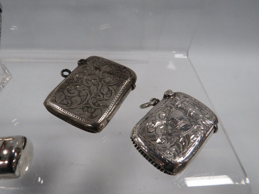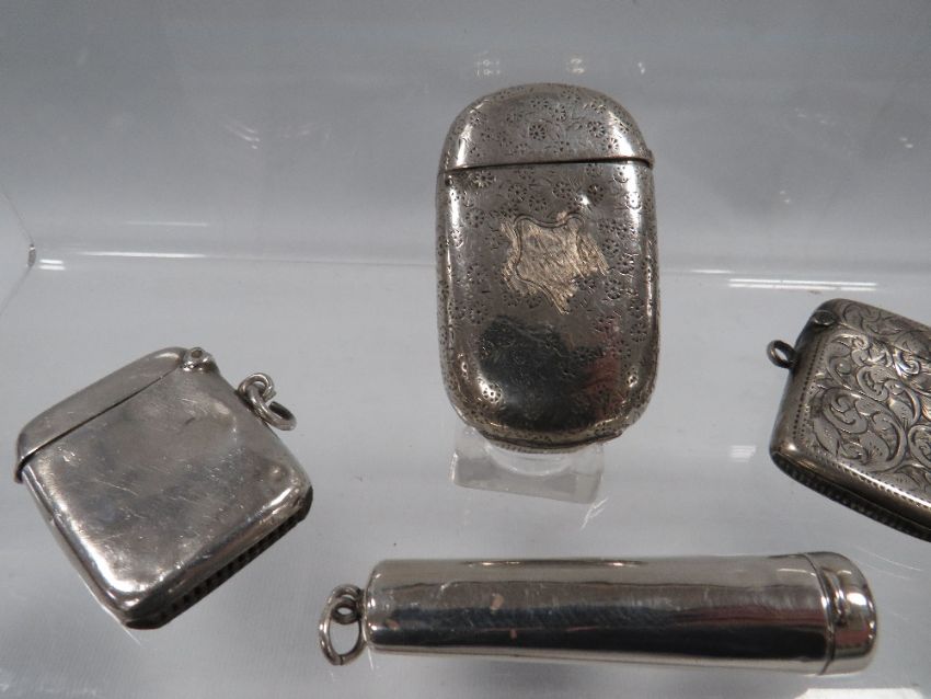 A COLLECTION OF HALLMARKED SILVER VESTA CASES TOGETHER WITH A CHEROOT HOLDER