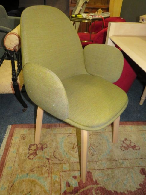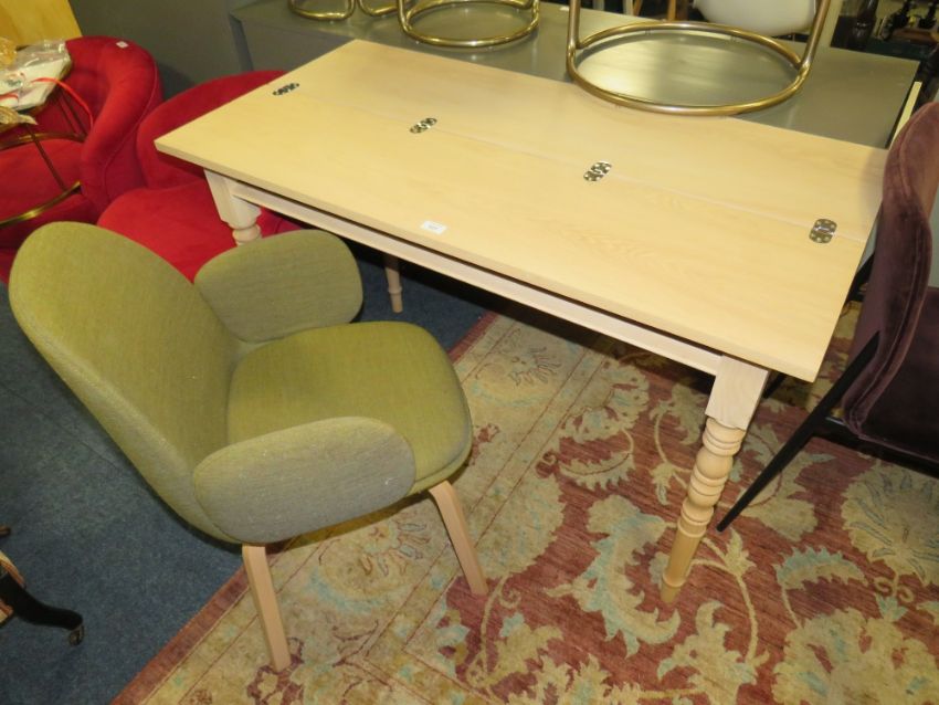 A MODERN FOLDING DESK/TABLE WITH GREEN ARMCHAIR (2)
