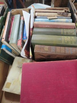 TWO TRAYS OF ASSORTED BOOKS TO INCLUDE THE MYTHS OF GREECE AND ROME, REF ATLAS OF GREATER LONDON AND SAND ART FRAMED AND GLAZED PICTURES