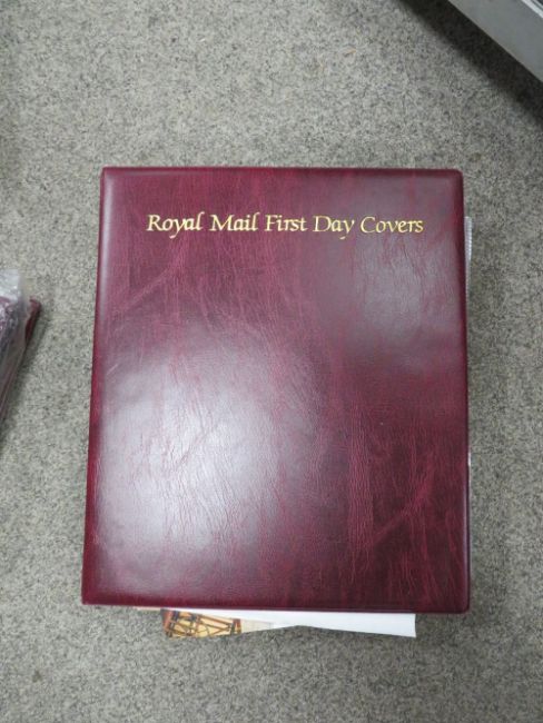 ONE BOX OF ASSORTED STAMPS, FIRST DAY COVERS AND ALBUMS ETC