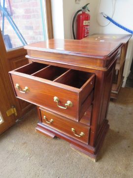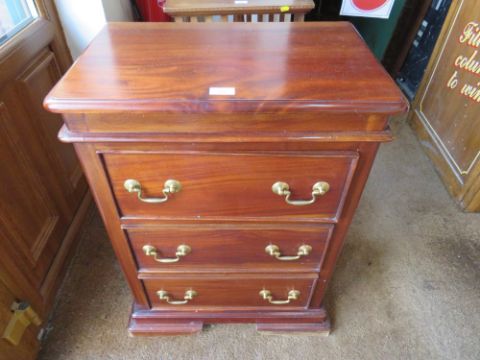 A SMALL REPRODUCTION MAHOGANY THREE DRAWER CHEST W-56 CM