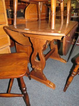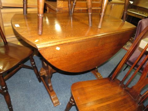 AN OAK DROPLEAF TABLE AND FIVE HOOP BACK CHAIRS
