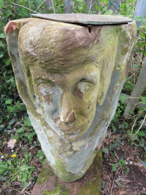 ONE SANDSTONE SUNDIAL, COLUMN DEPICTING A MANS FACE