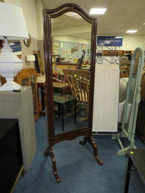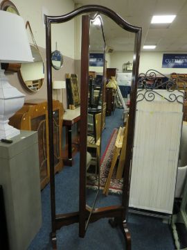 AN ANTIQUE MAHOGANY SWIVEL LARGE CHEVAL MIRROR