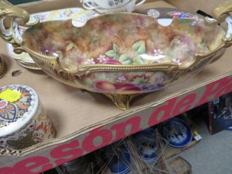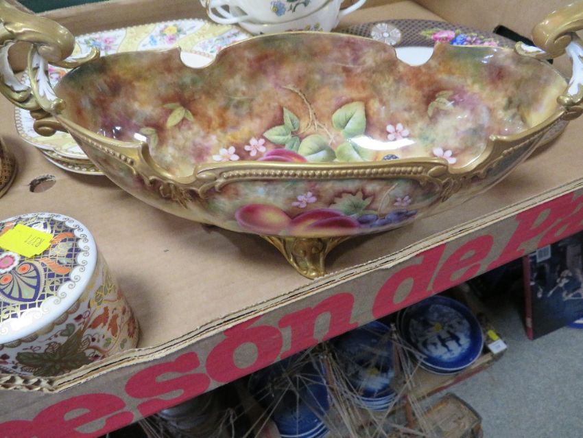 A TRAY OF ASSORTED FLORAL SPODE PLATES, VASES, PLATES ETC