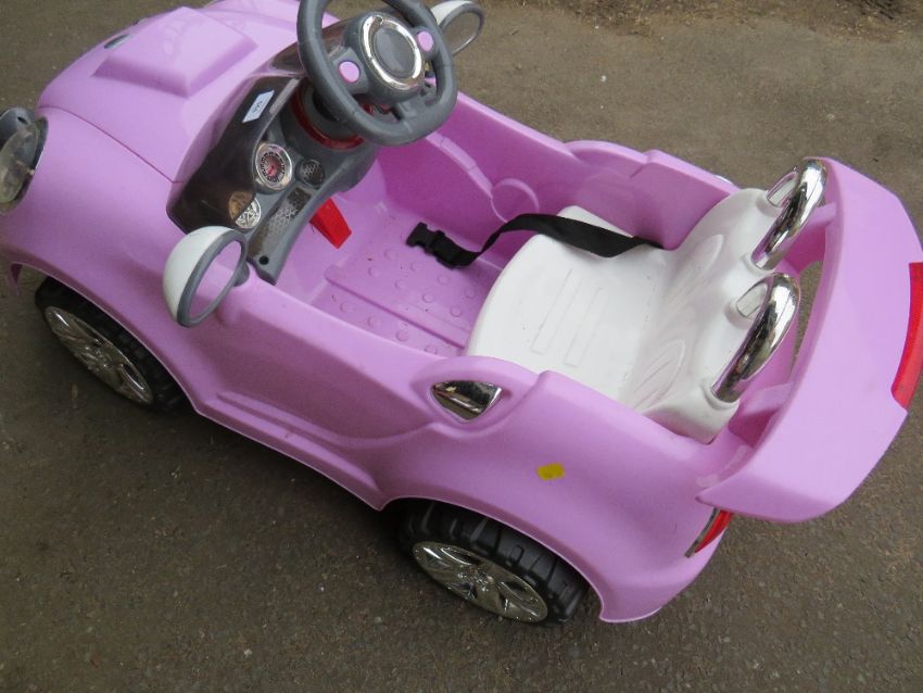A CHILDS BATTERY RIDE ON CAR LILAC SPORTS MINI - (MISSING CHARGER)