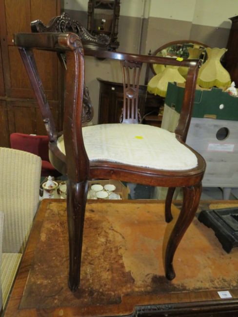 AN ANTIQUE CARVED MAHOGANY CORNER CHAIR