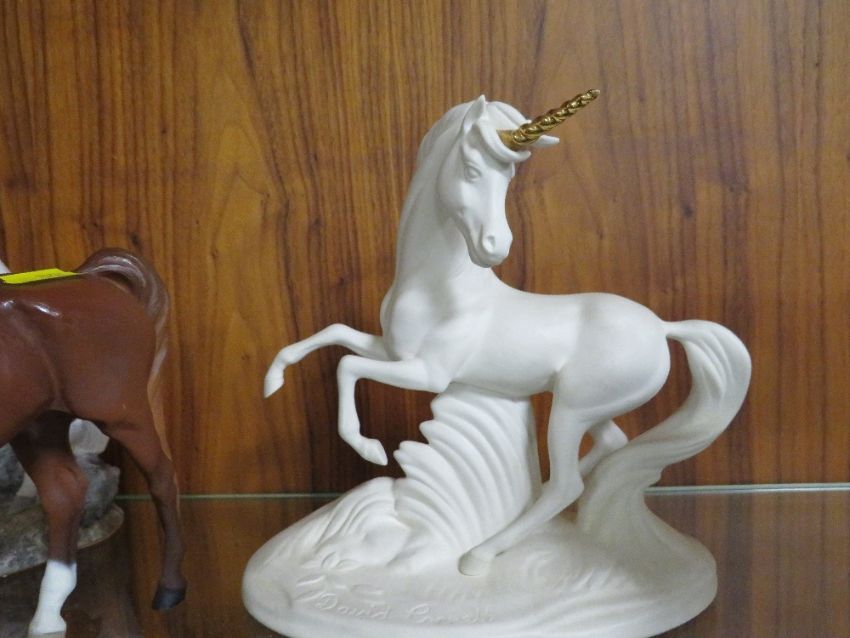 FIVE ASSORTED HORSE FIGURES TO INCLUDE A FRANKLIN MINT EXAMPLE